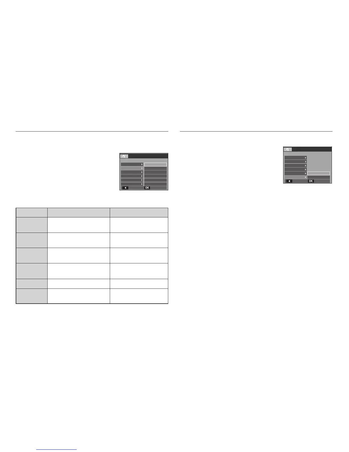 desired menu, and then press the Right