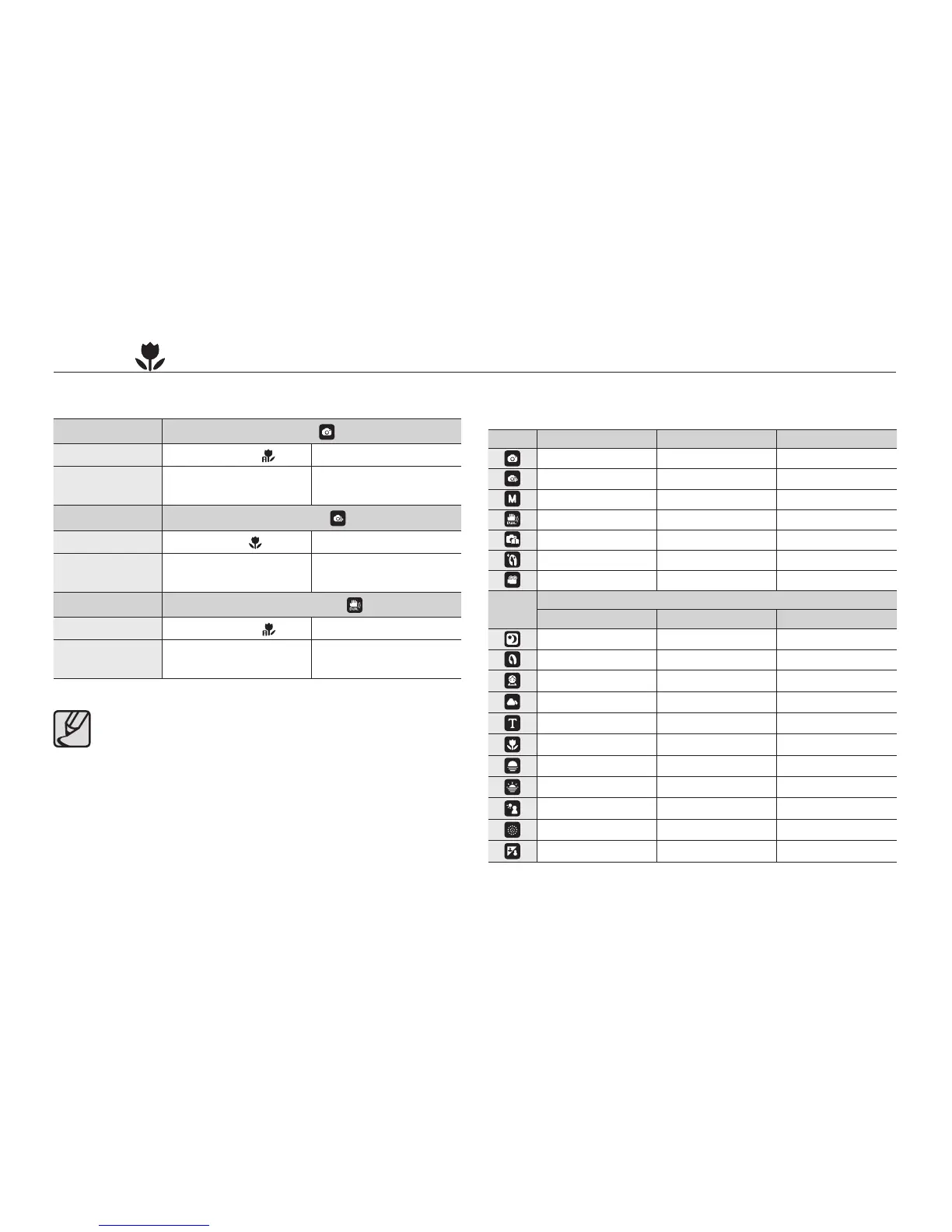 Types of focus mode and focus range (W: Wide, T: Tele) (Unit: cm)