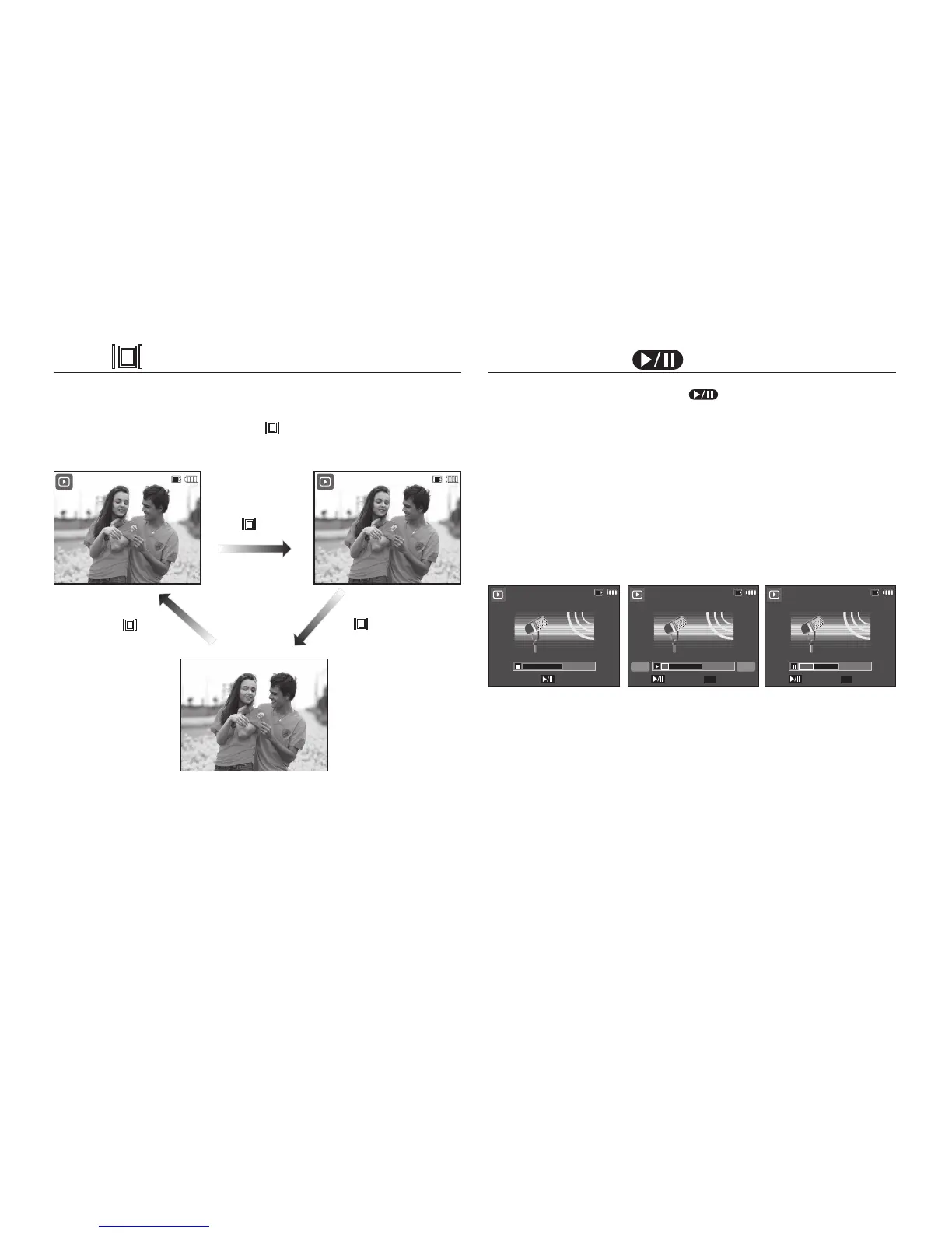 · In Stop mode: Plays a still image with a voice memo, a voice fi le,