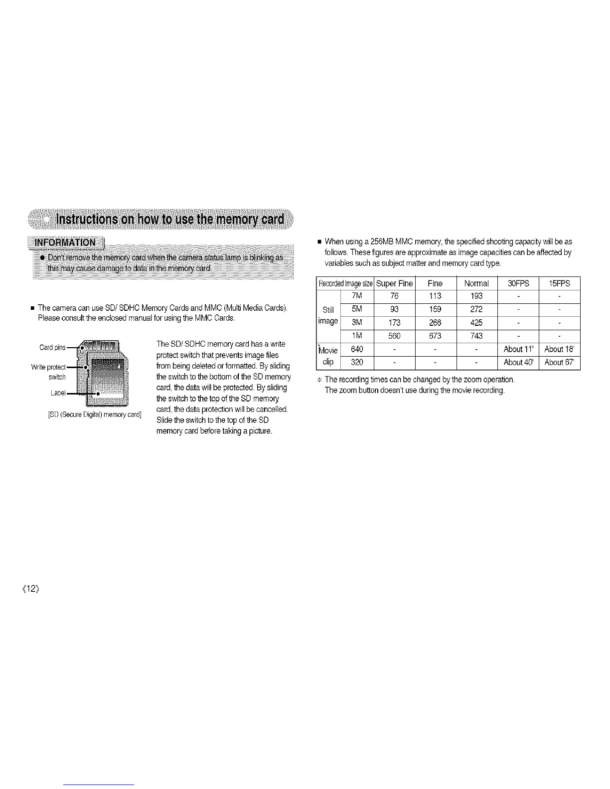 • When usinga 256MB MMC memory,the specified shooting capadty wilt be as
