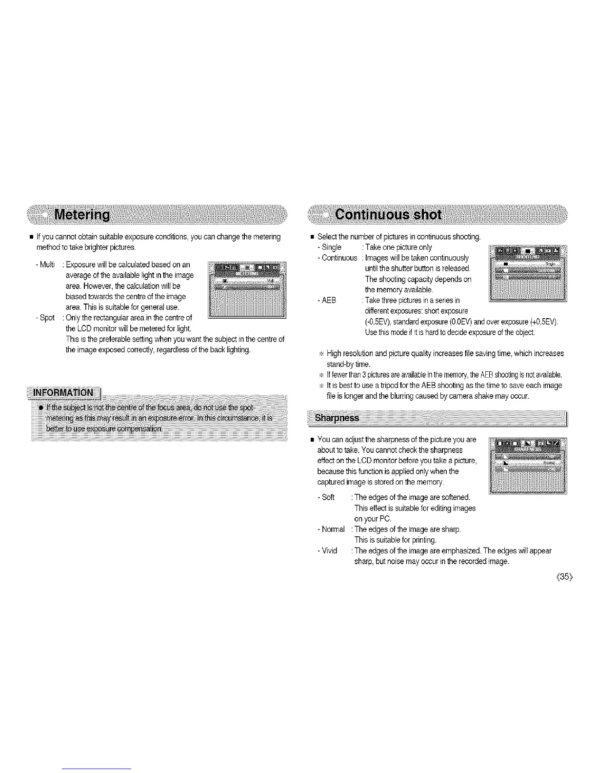 • ffyou cannot obtain suitableexposure conditions, you can change themetering