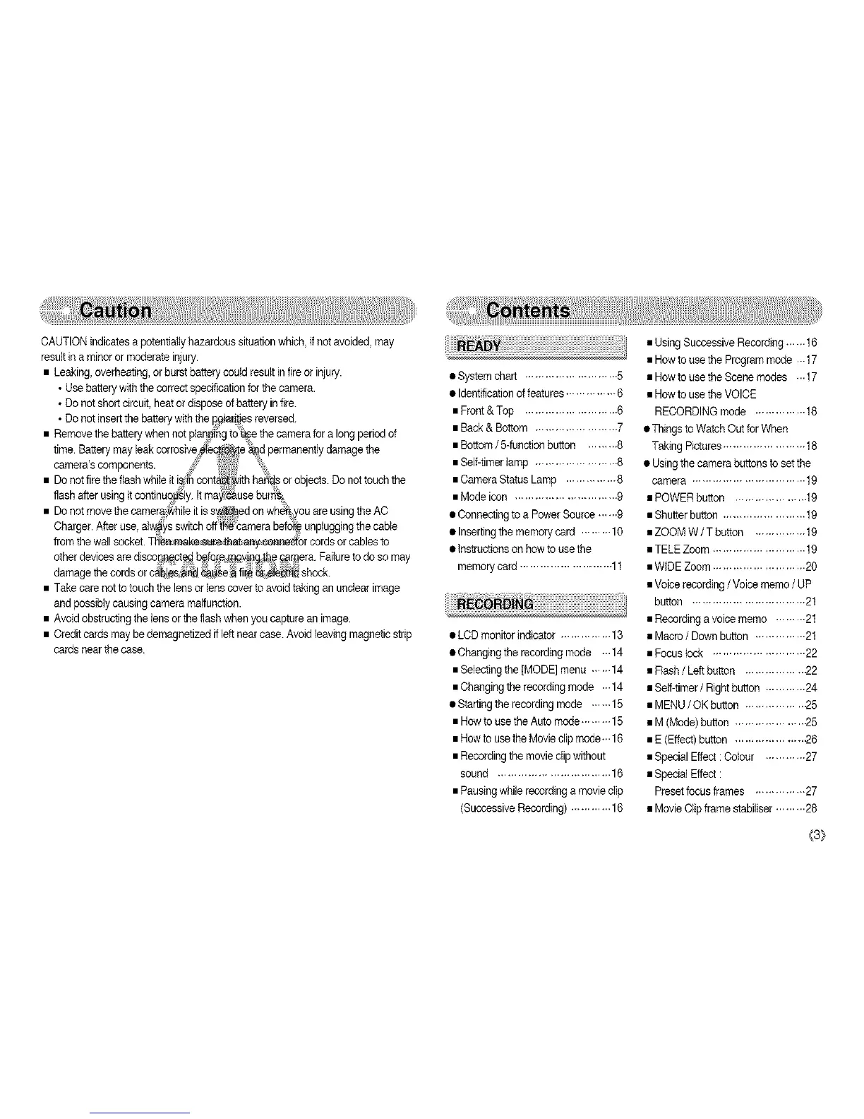 • Startingthe recordingmode ...... 15