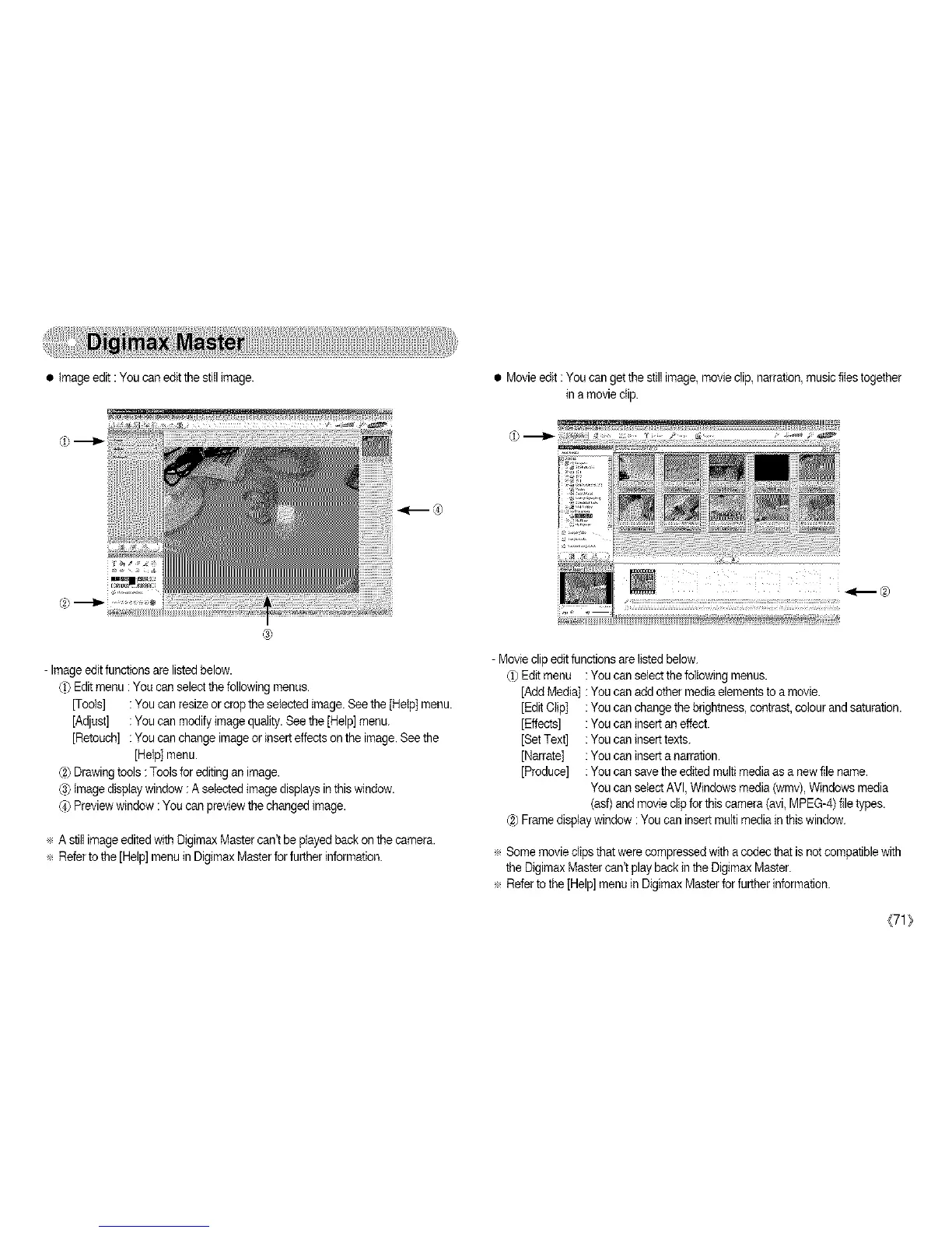 ÷ Refer tothe [Help] menu in Digimax Masterfor furtherinformation.