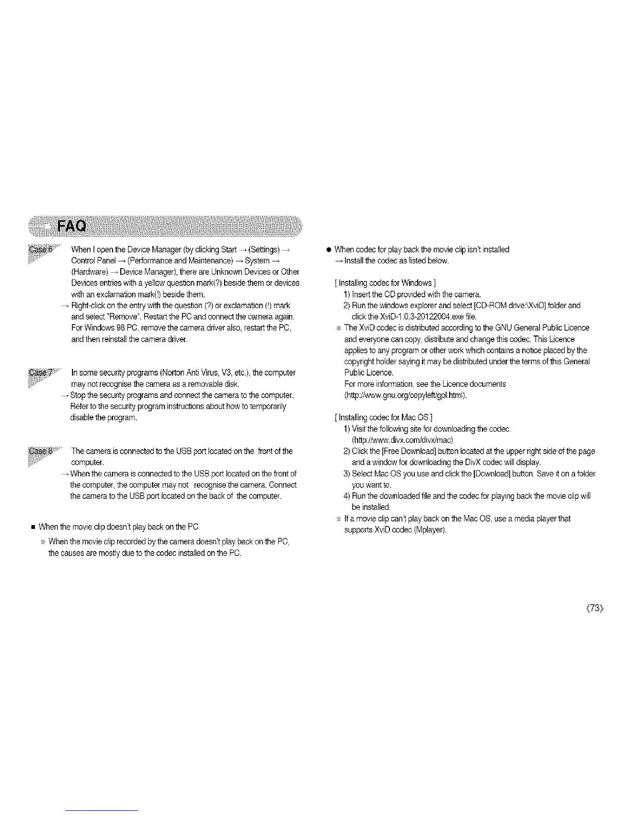 ÷ When the movieclip recorded by the camera doesn'tplay back on the PC,