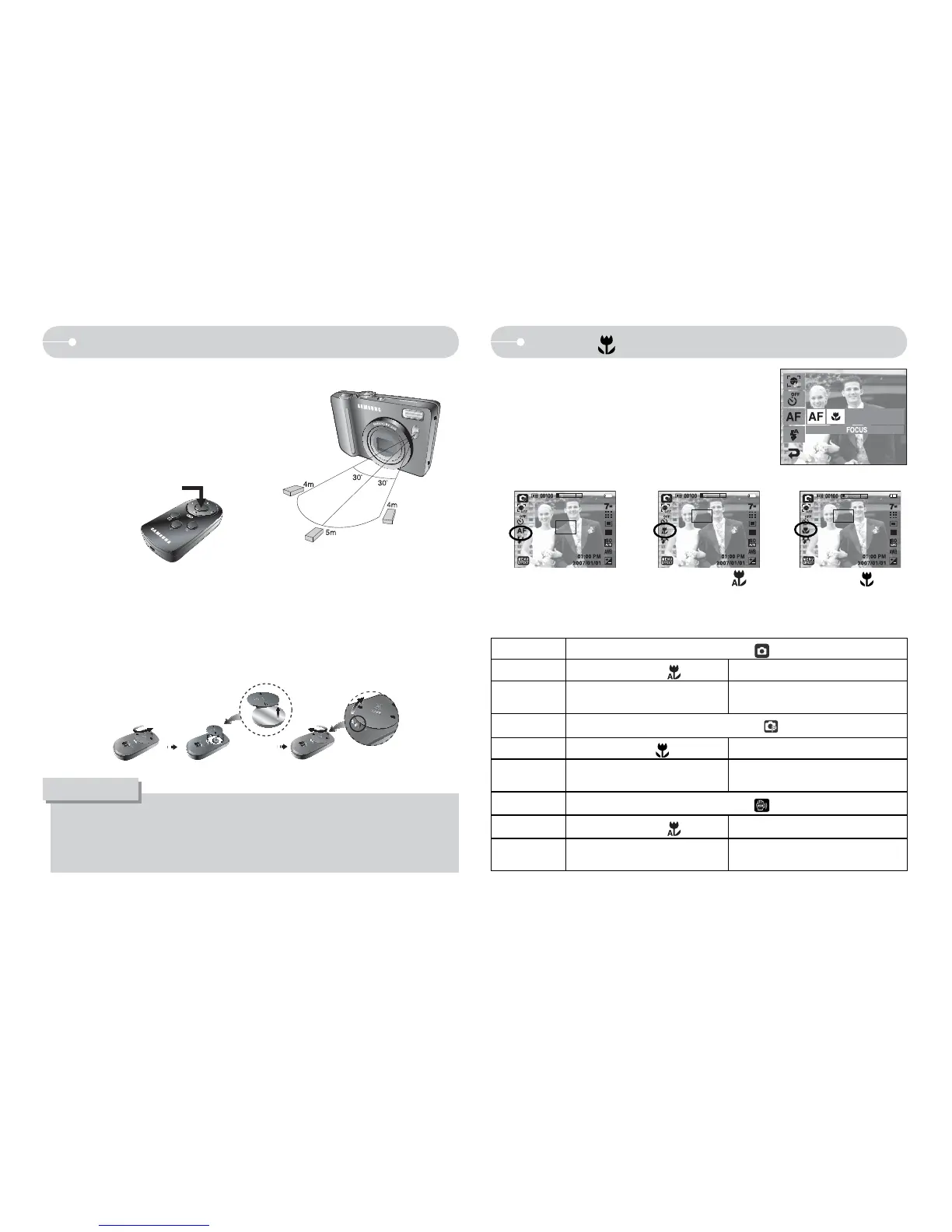Q Types of focus modes and focus ranges (W: Wide, T: Tele) (Unit : cm)