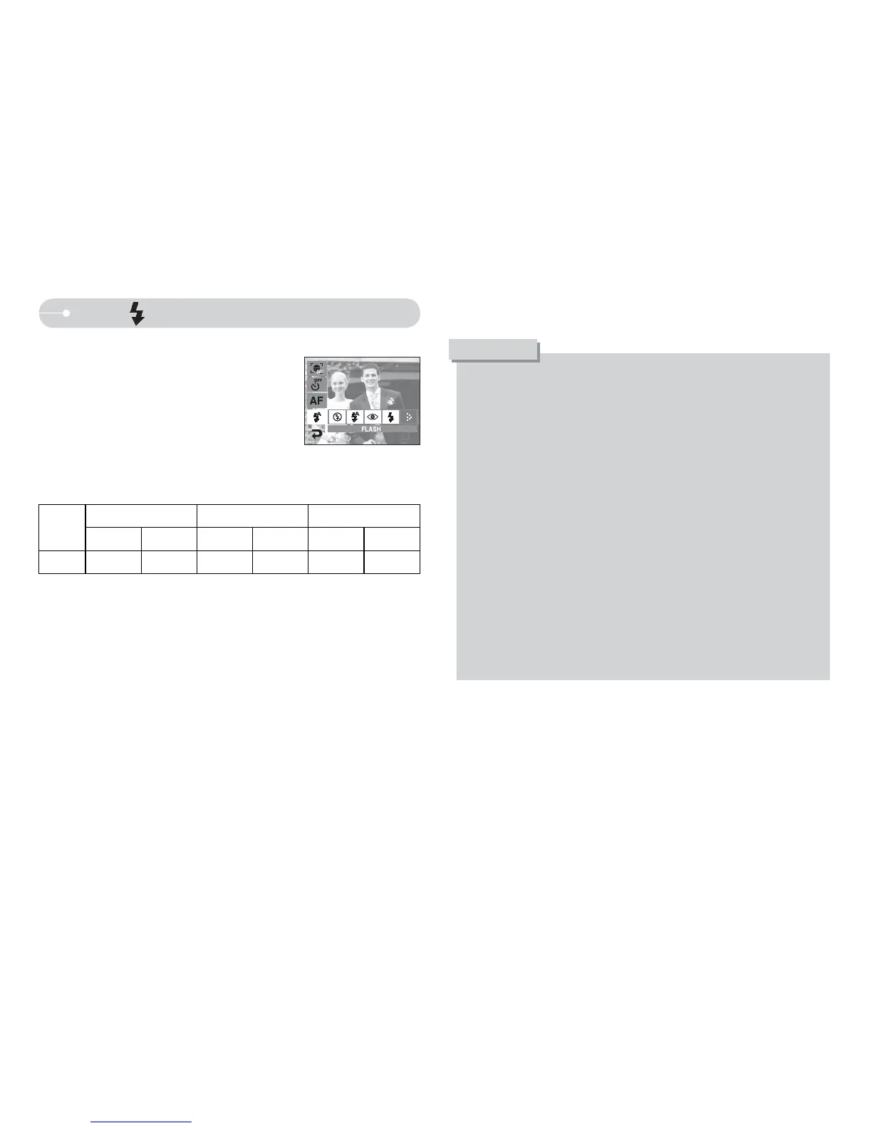 O Flash range (W : Wide, T : Tele) (Unit : m)