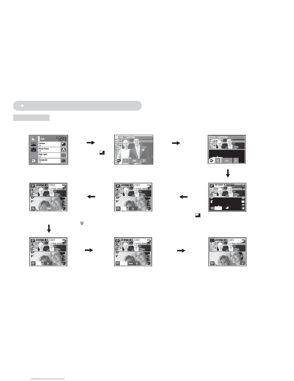Q Press the [EFFECT] menu in an available recording mode. If the image size 6M P (3072X2048), 5M W (3072X1728) are selected, the FUN menu cannot be
