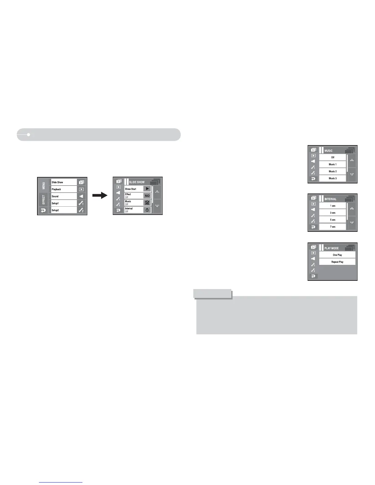 Q Images can be displayed continuously at pre-set intervals. You can view the