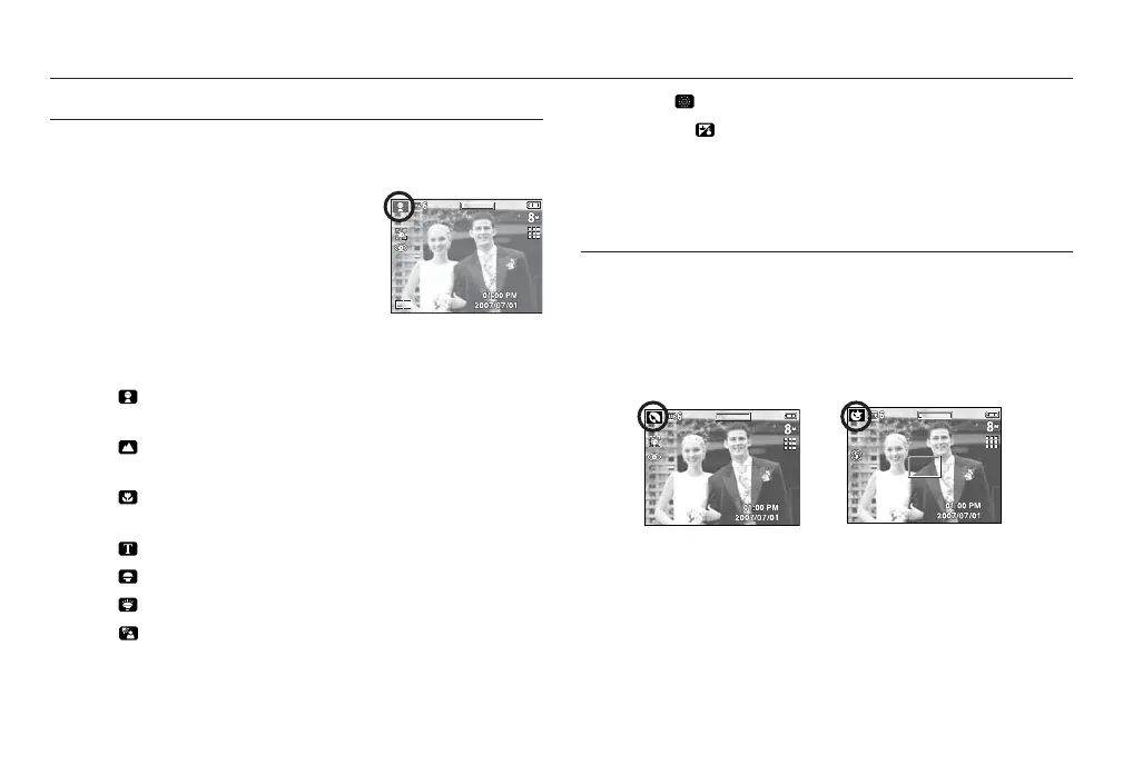 장면 촬영모드의 하위 메뉴는 다음과 같습니다.