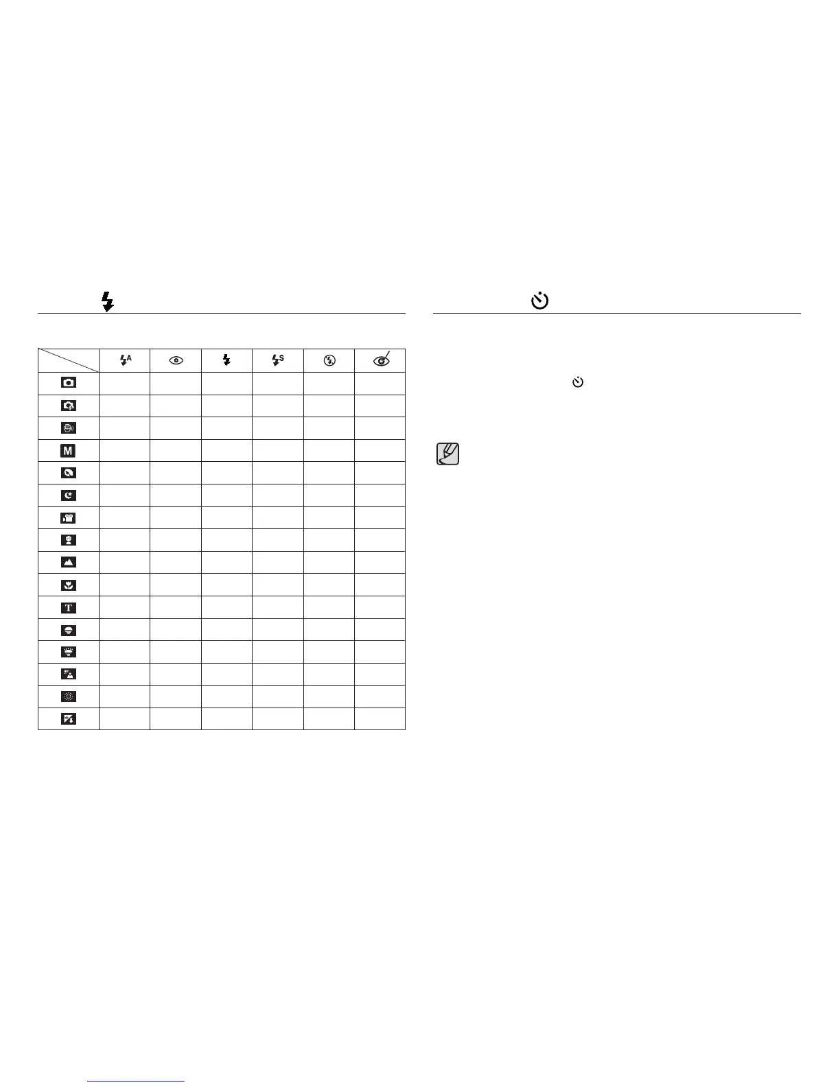 Available flash mode, by recording mode