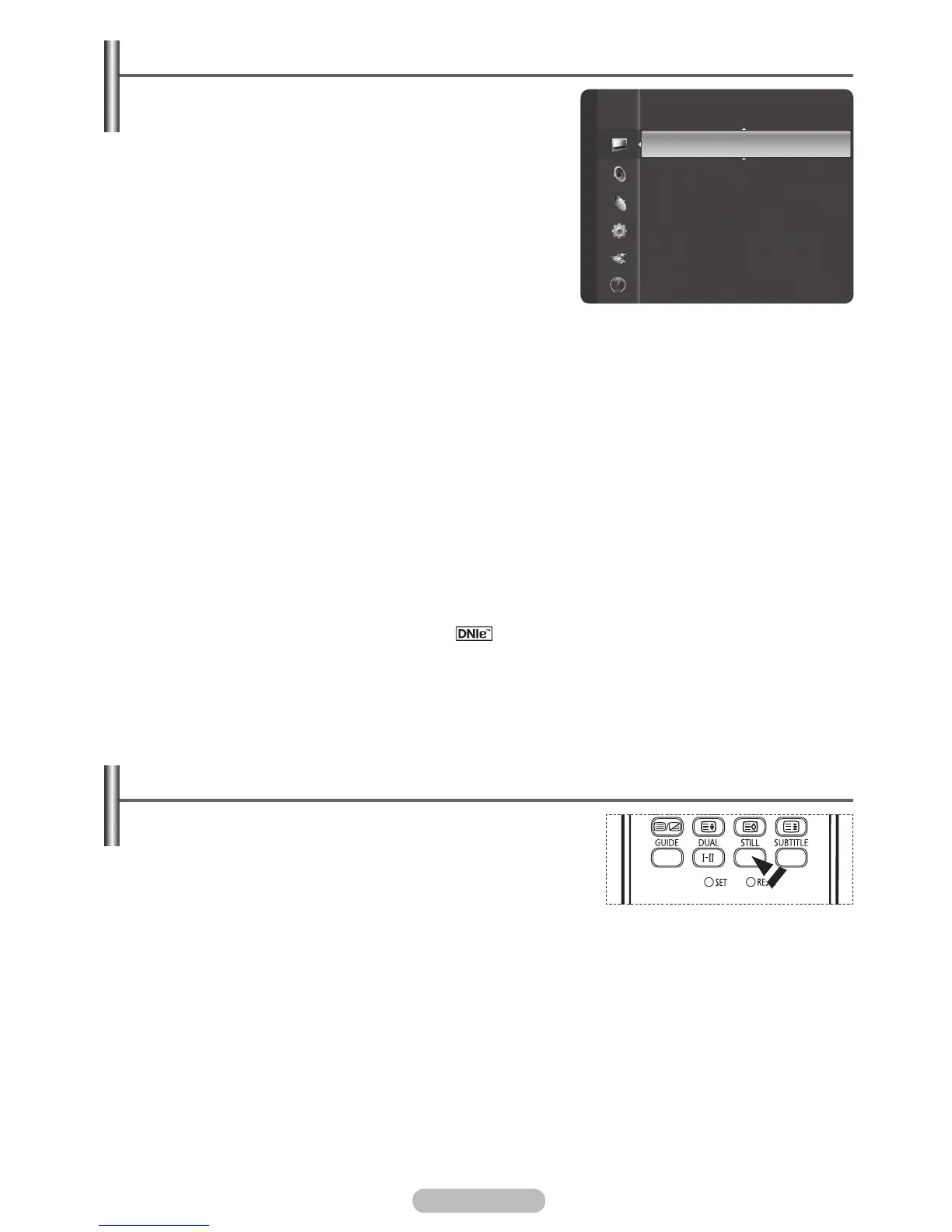 This TV includes the DNIe function so as to provide a high visual quality. If you set DNIe to on, you