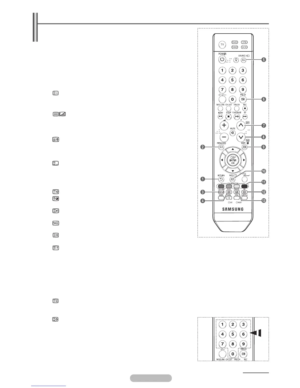 Press to select the teletext mode (LIST/FLOF).