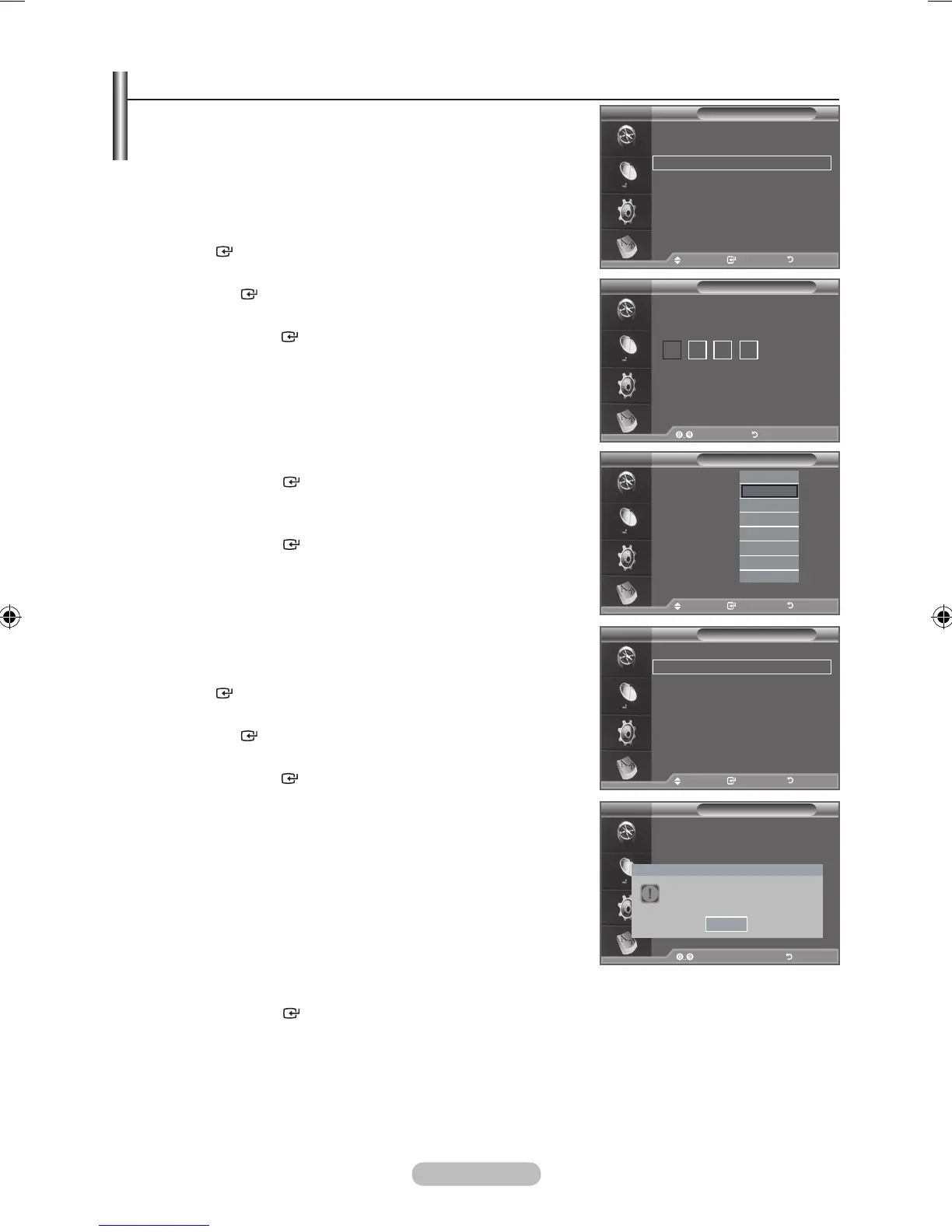 If you forget the PIN code, press the remote control buttons in the following sequence, which