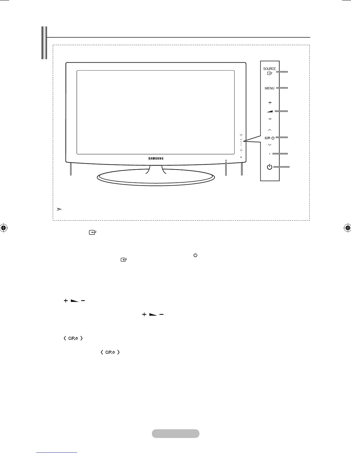 Press to turn the TV on and off.