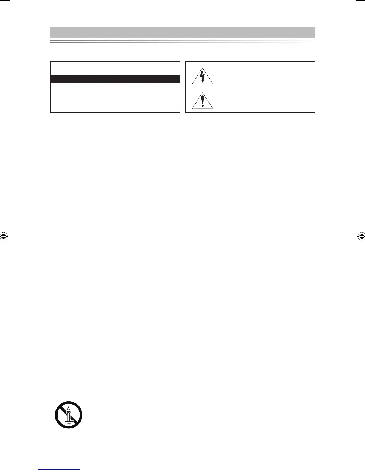 • Be sure to pull the power plug out of the outlet if the TV is to remain unused or if you are to leave the house for an