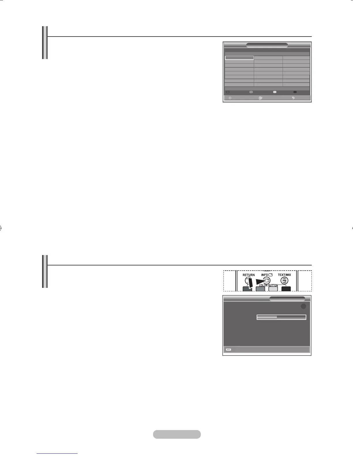 6. Tuo näyttöön kanavien hallinnan edellinen tai seuraava sivu painamalla punaista tai vihreää painiketta.