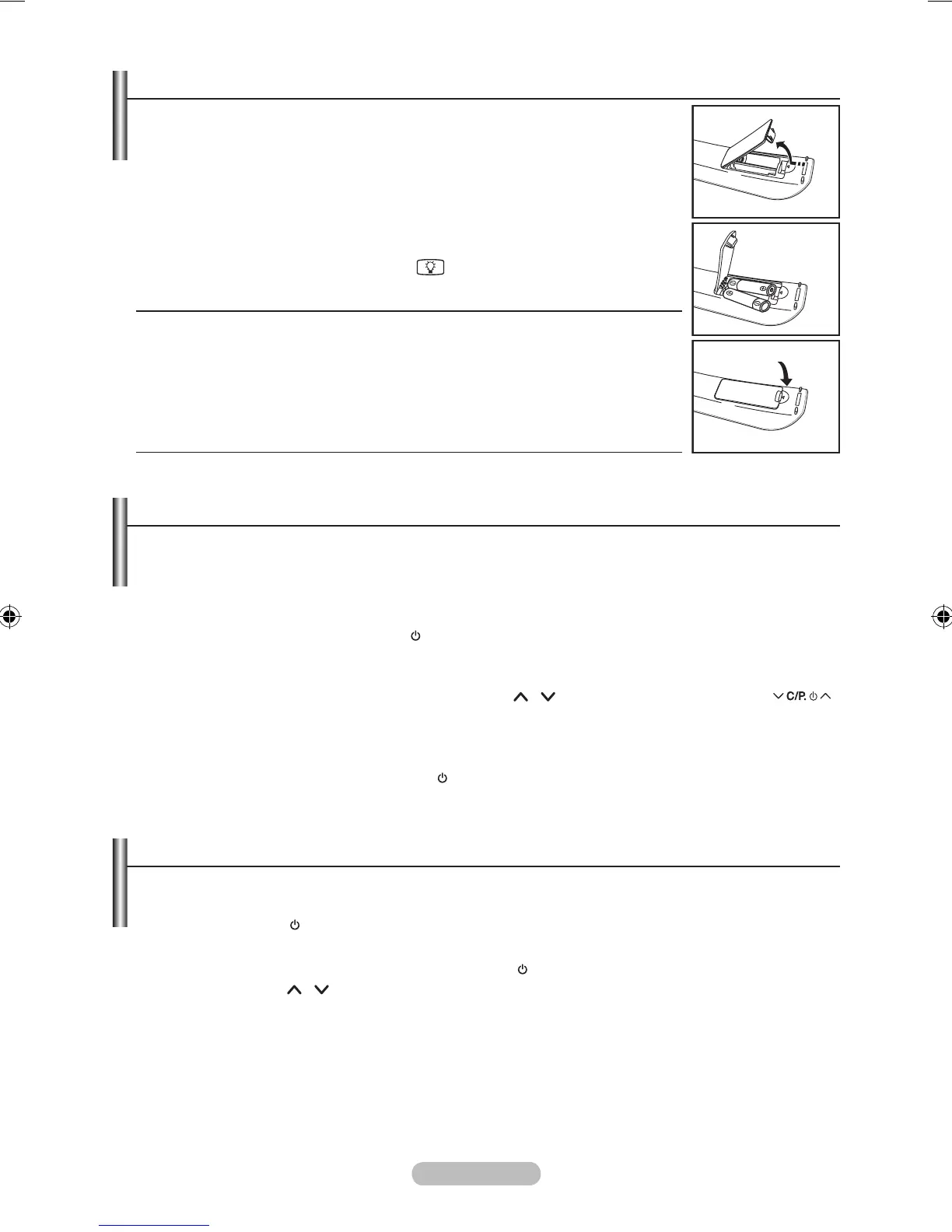 1. Lift the cover at the back of the remote control upward as shown in the gure.