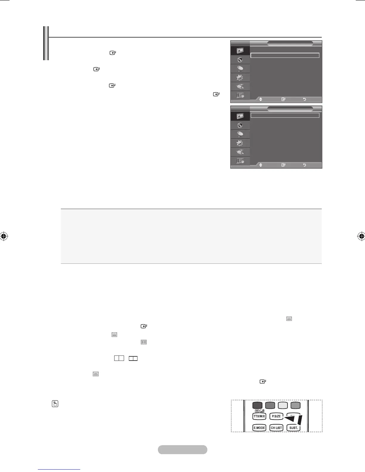 When Double ( , ) mode has been set in PIP, the Picture Size cannot be set.