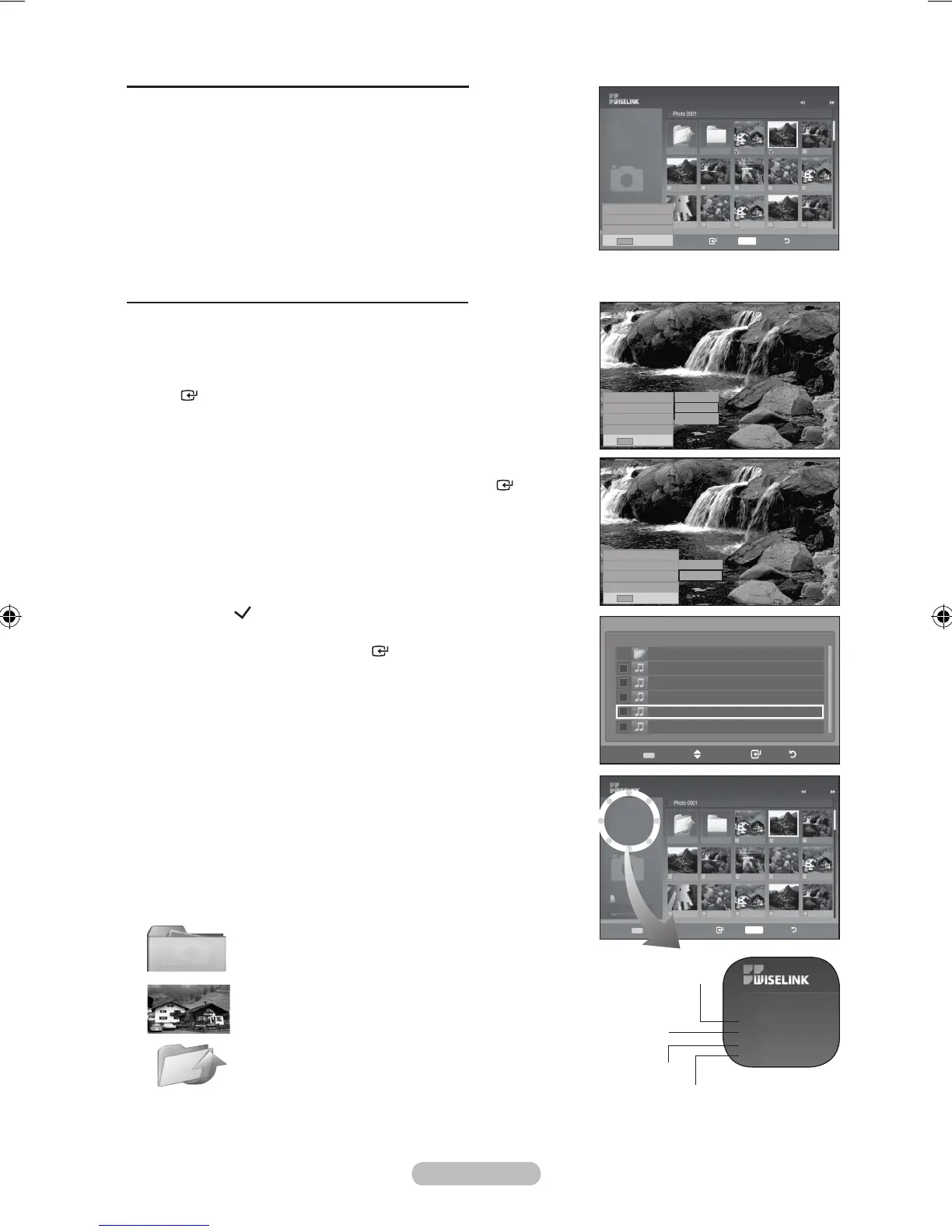 По време на слайдшоуто се показват MP3 файловете и папките в