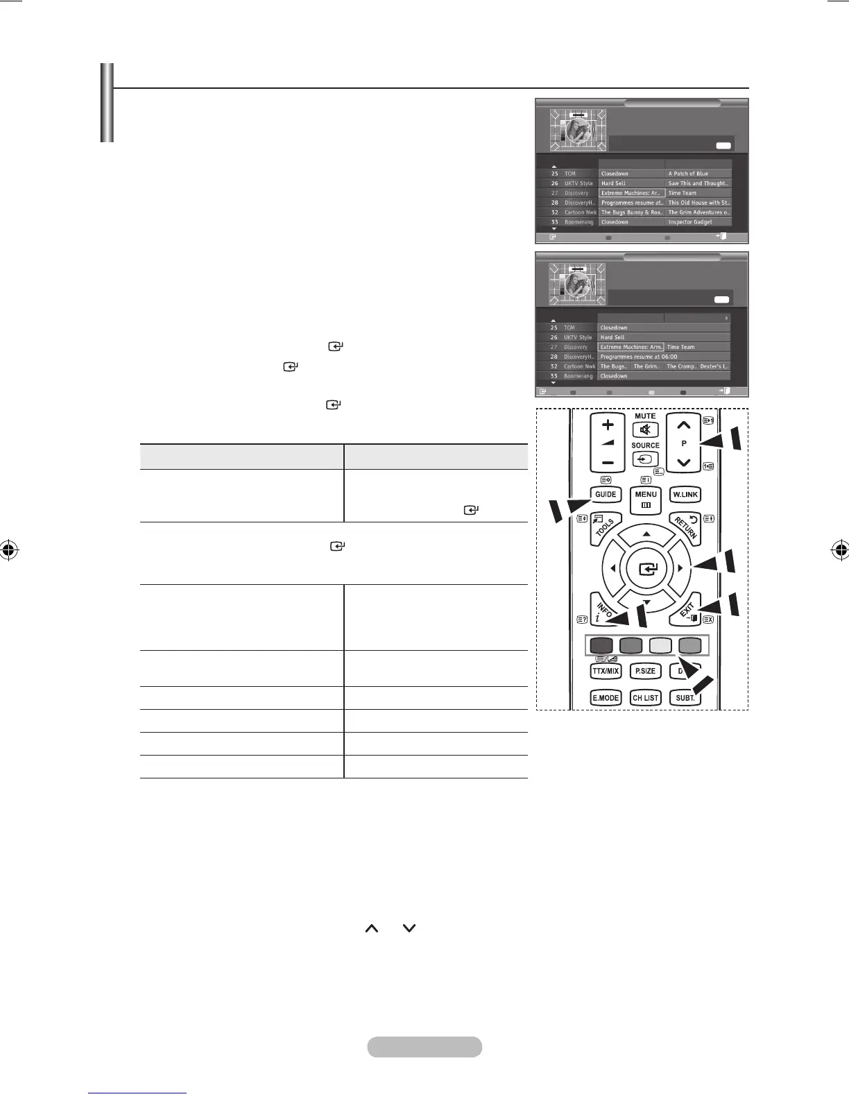 Prikazali popis “Omiljeni kanali” i “Svi kanali” Uzastopno pritišćite zeleni gumb.