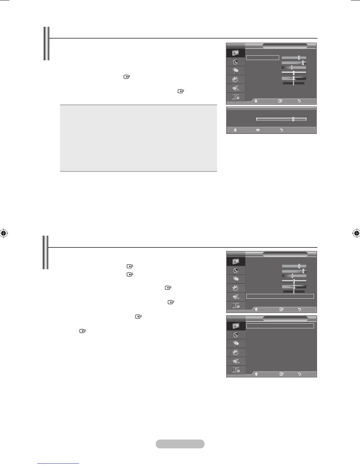 Nastavené hodnoty se uloží podle zvoleného obrazového režimu.