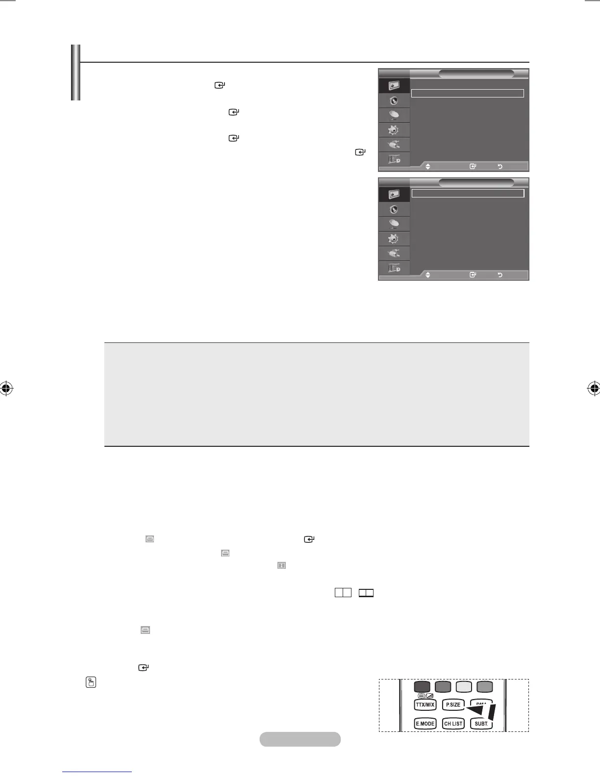 Keď sa v režime Obraz v obraze nastaví dvojitý režim ( , ), nedá sa nastaviť veľkosť obrazu.