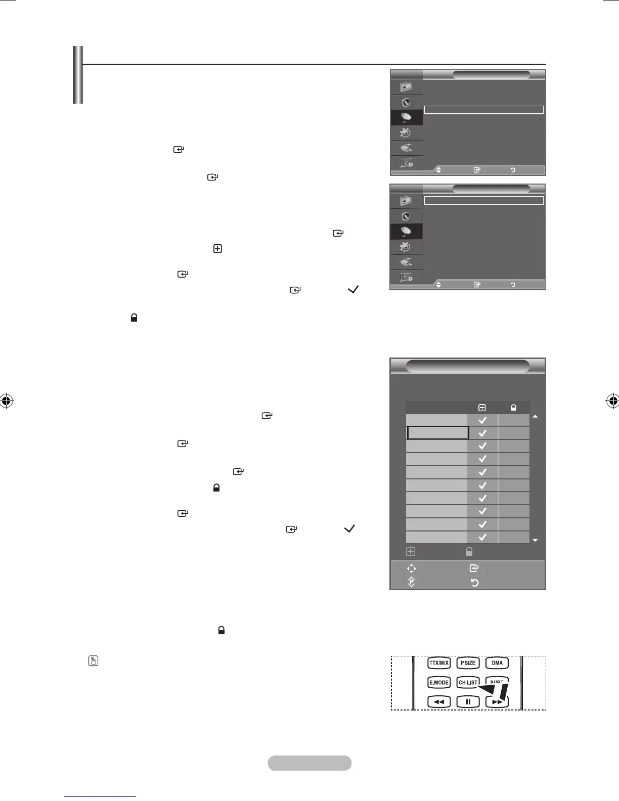 ▲, ▼, ◄ sau ►, selectaţi un canal de blocat şi apăsaţi