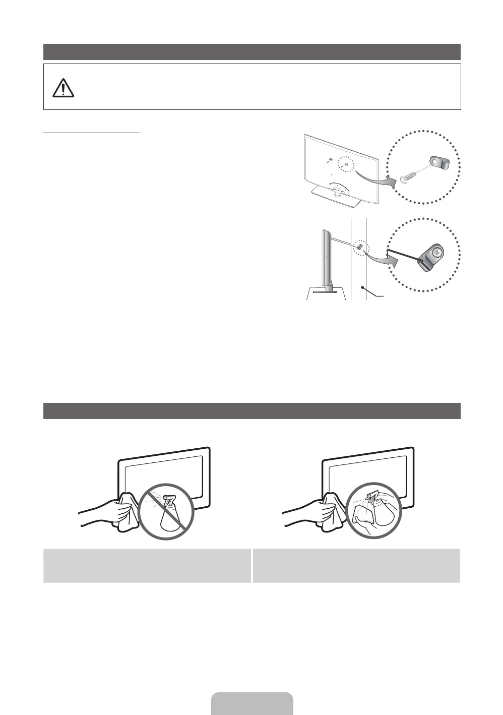 Caution: Pulling, pushing, or climbing onto the TV may cause the TV to fall. In particular, ensure that your