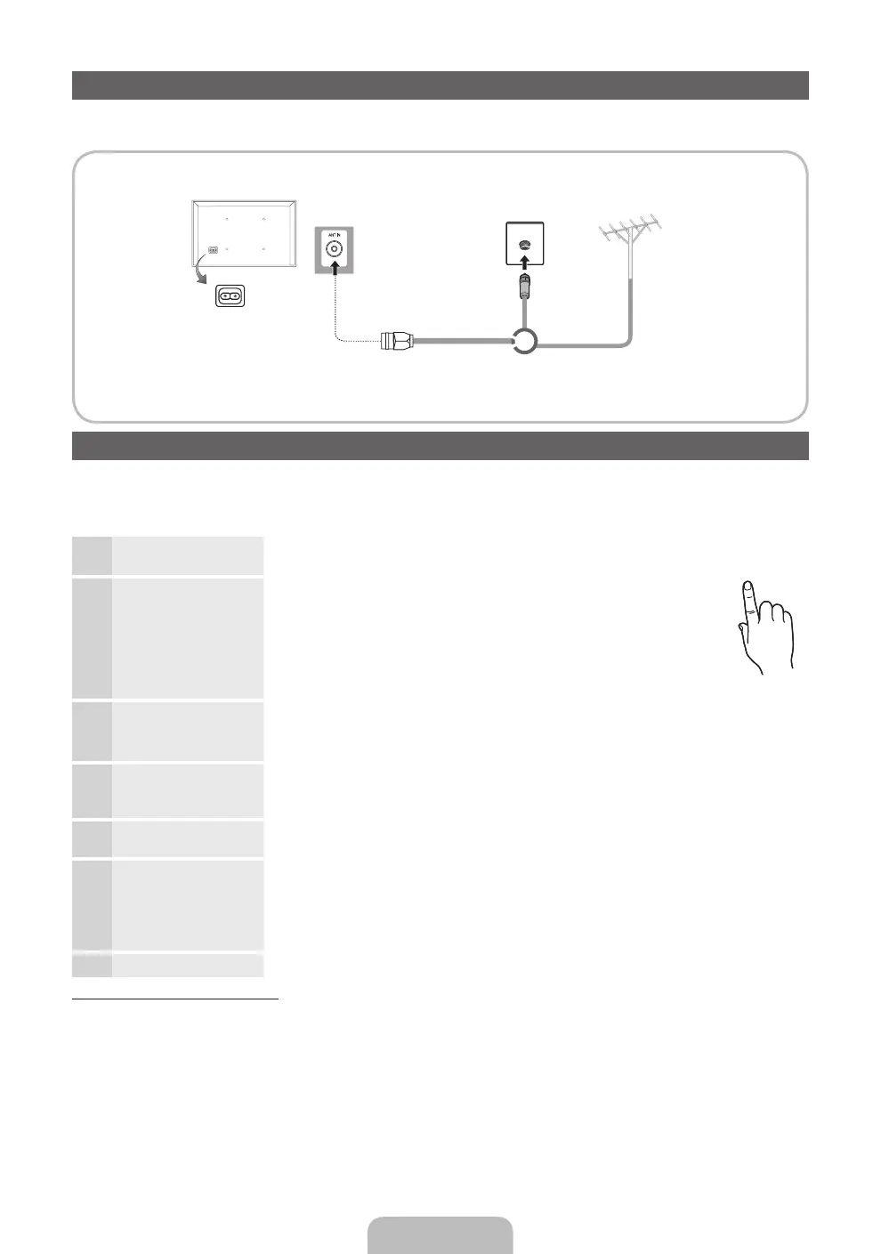 Välj kanalkälla för memorering. Om du ställer in antennkällan som Kabel visas ett steg där du
