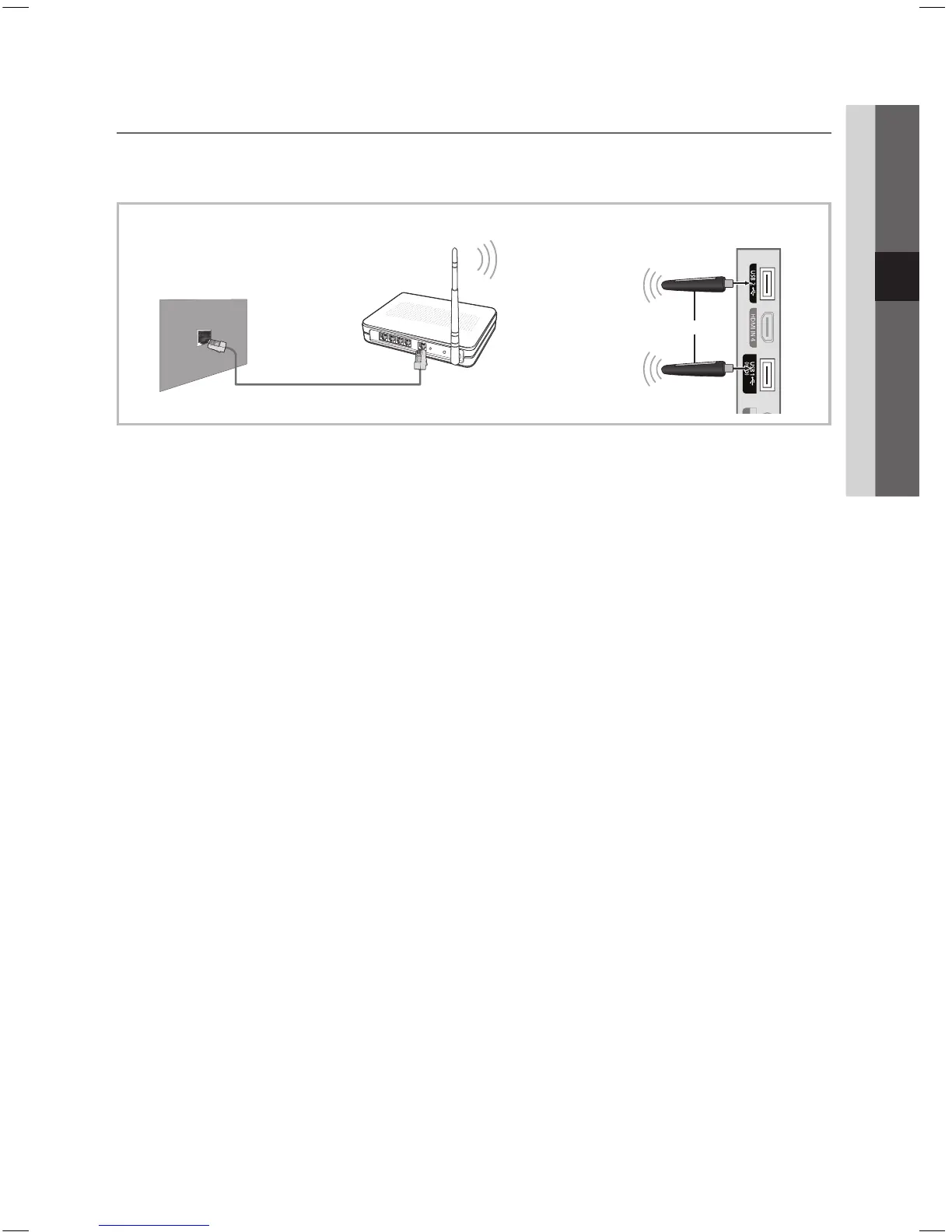 To connect your TV to your network wireless, you need a wireless router or modem and a Samsung Wireless LAN Adapter