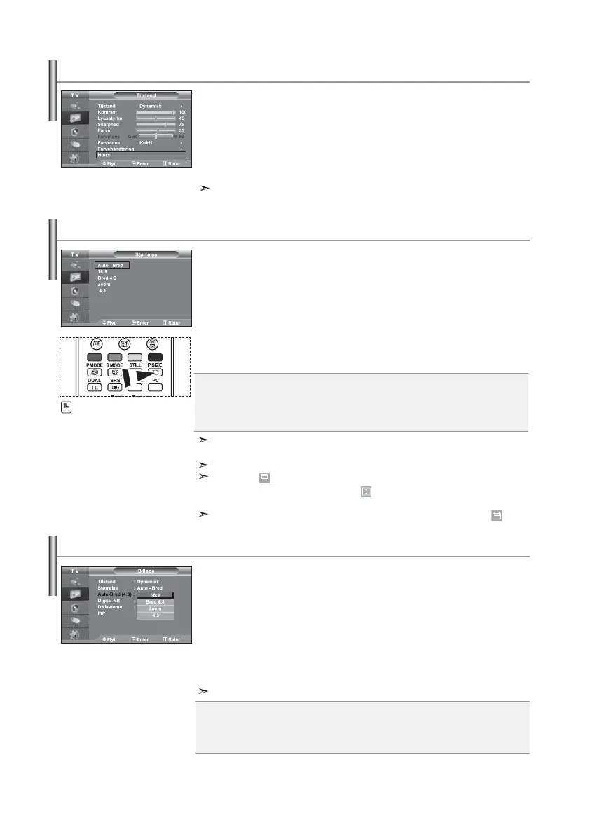 Funktionen “Auto - Bred” er kun tilgængelig i tilstandene “TV”, “Ekstern1“,