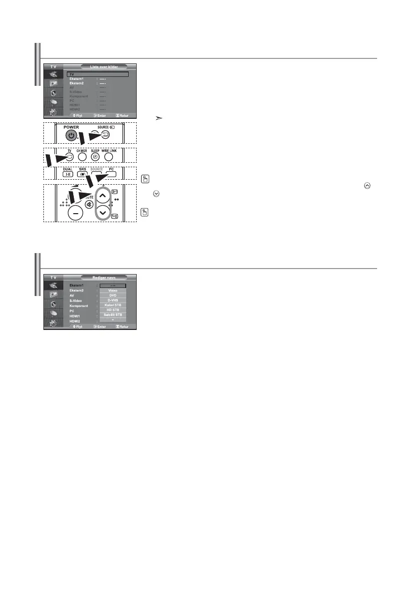 “Ekstern1”, “Ekstern2”, der er aktiveret på “Liste over kilder”. “AV”, “S-Video”,