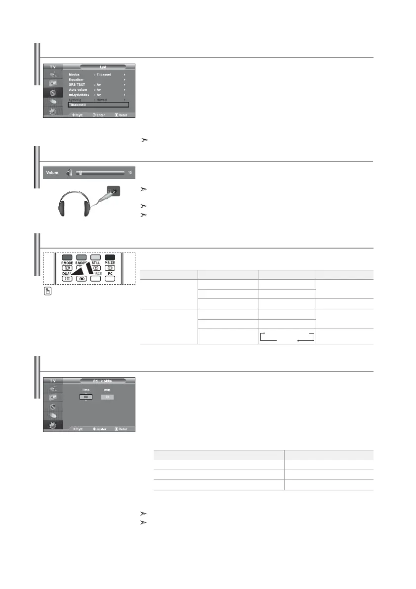 Når du kobler hodetelefonene til kontakten, kan du bare bruke Int.lydutkobl. og Lydvalg