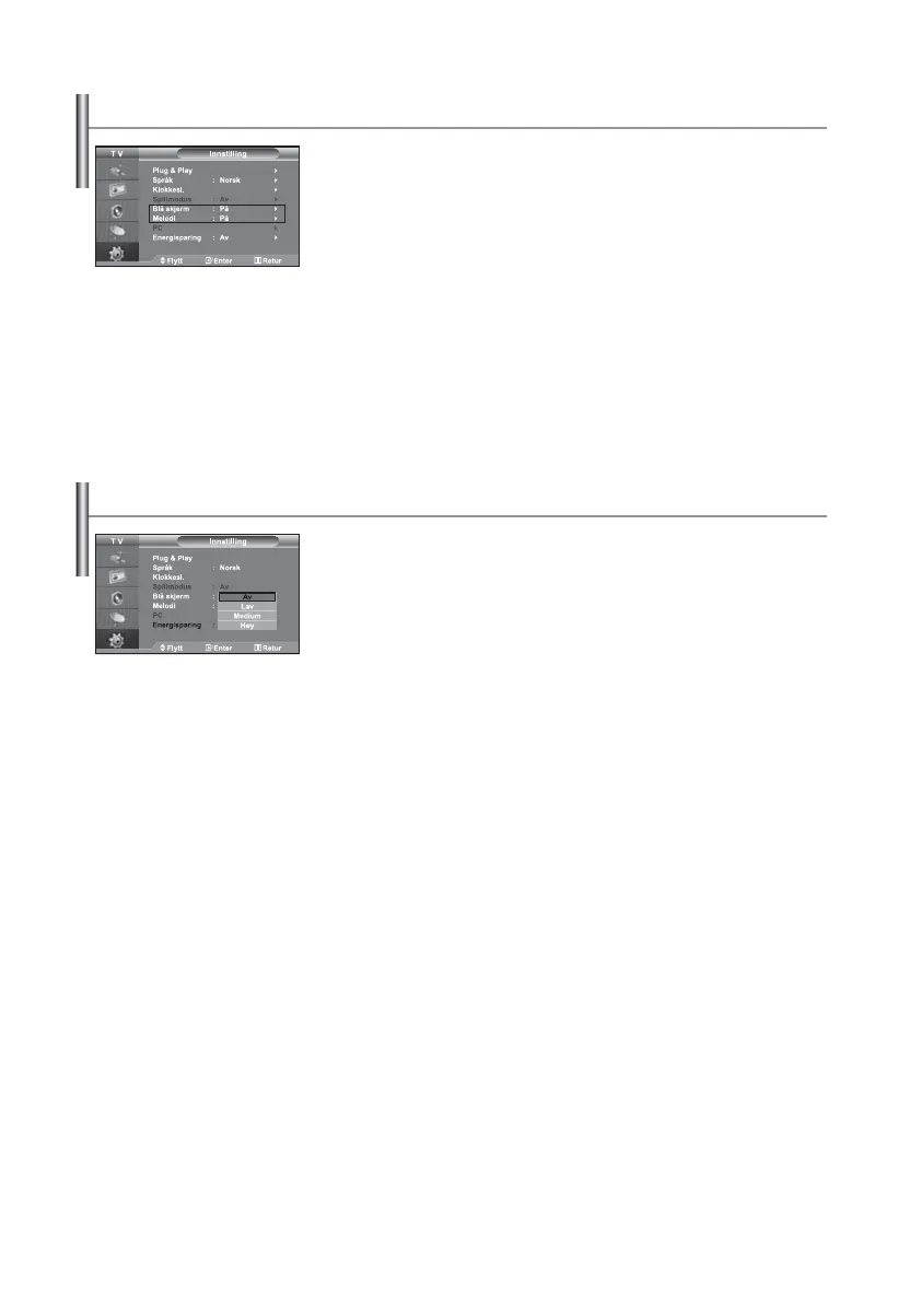 2. Trykk på eller -knappen for å velge “Blå skjerm” eller “Melodi”.