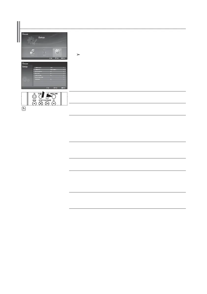 Setup (Oppsett) viser brukerinnstillingene i WISELINK-menyen.