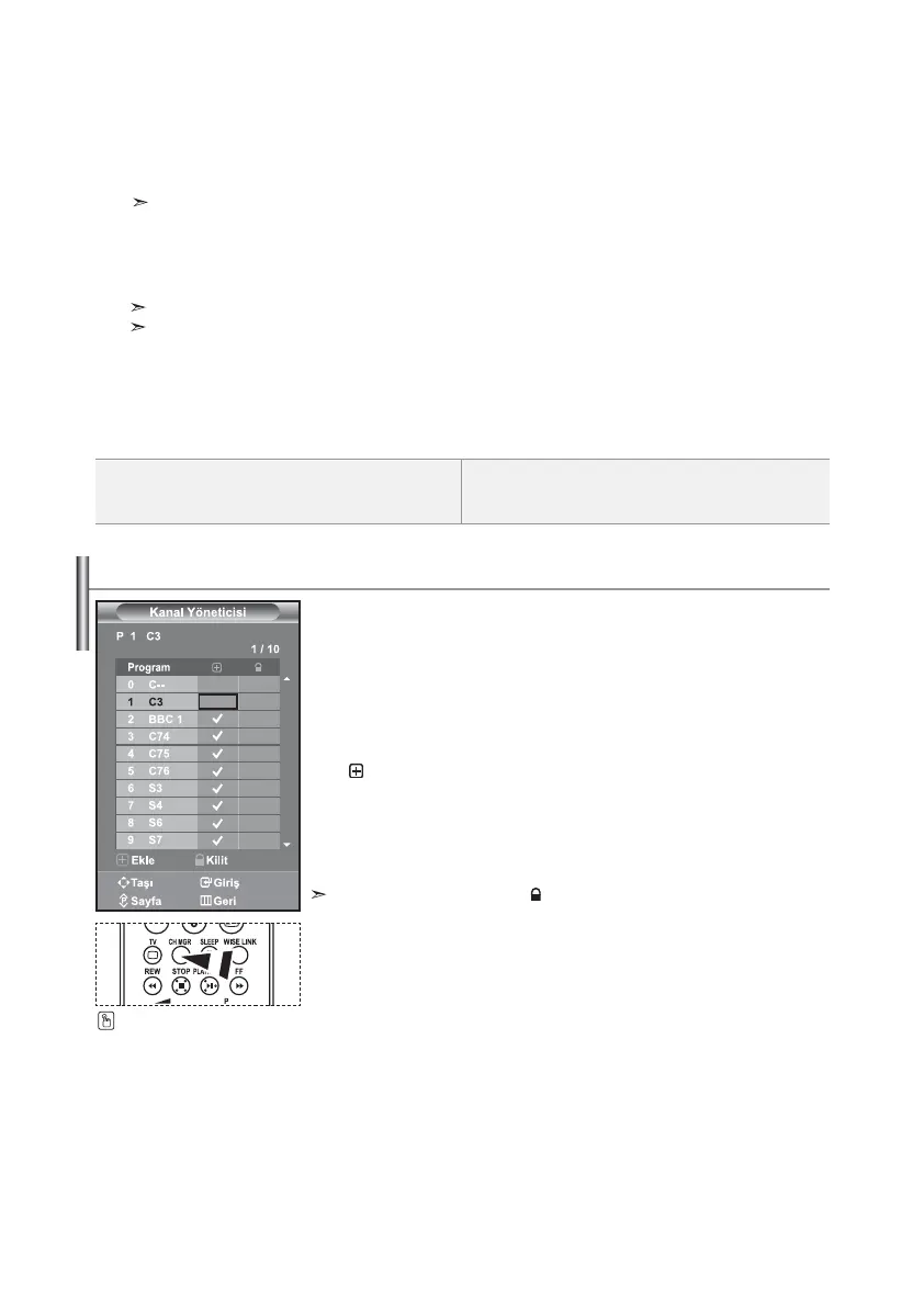 “Kanal Yöneticisi” seçmek için ya da düğmesine basın ve sonra ENTER