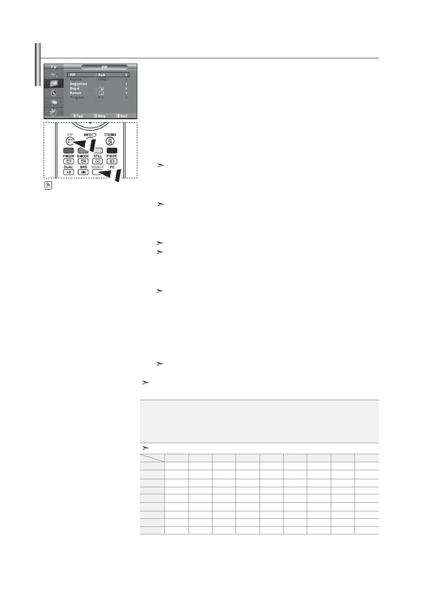 2. “PIP” seçmek için ya da düğmesine basın ve sonra