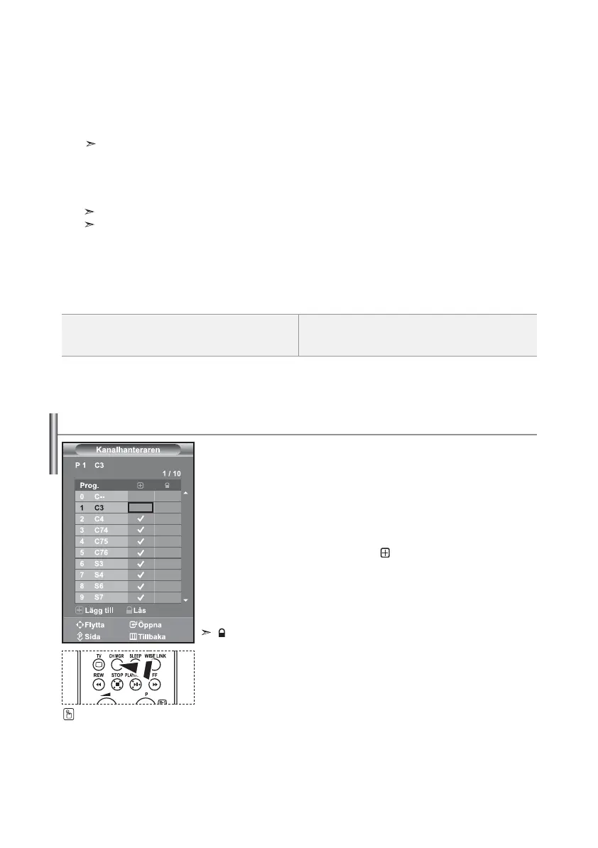 Tryck på knappen eller för att välja “Kanalhanteraren” och tryck