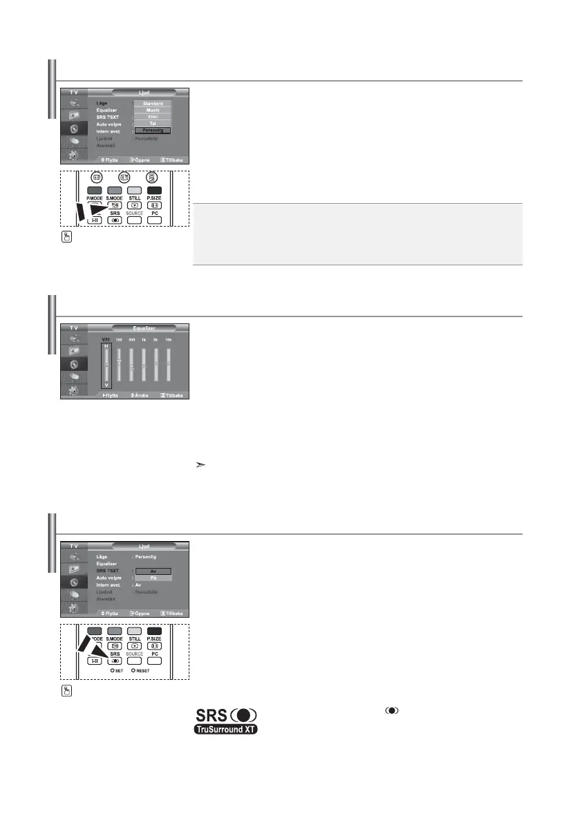 Väljer dina favoritinställningar för ljud. (Se “Justera ljudinställningar”)