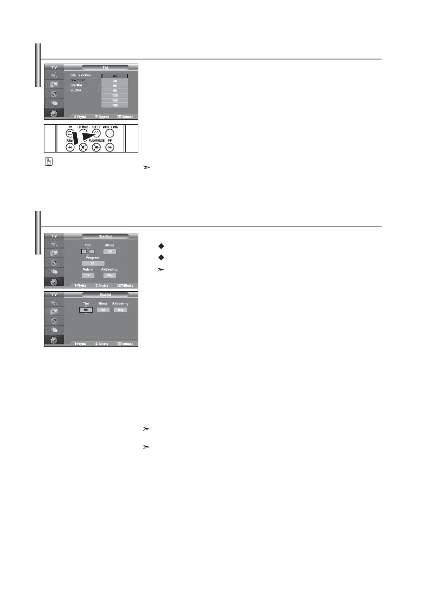 Du kan också ställa in timmar och minuter genom att trycka på fjärrkontrollens