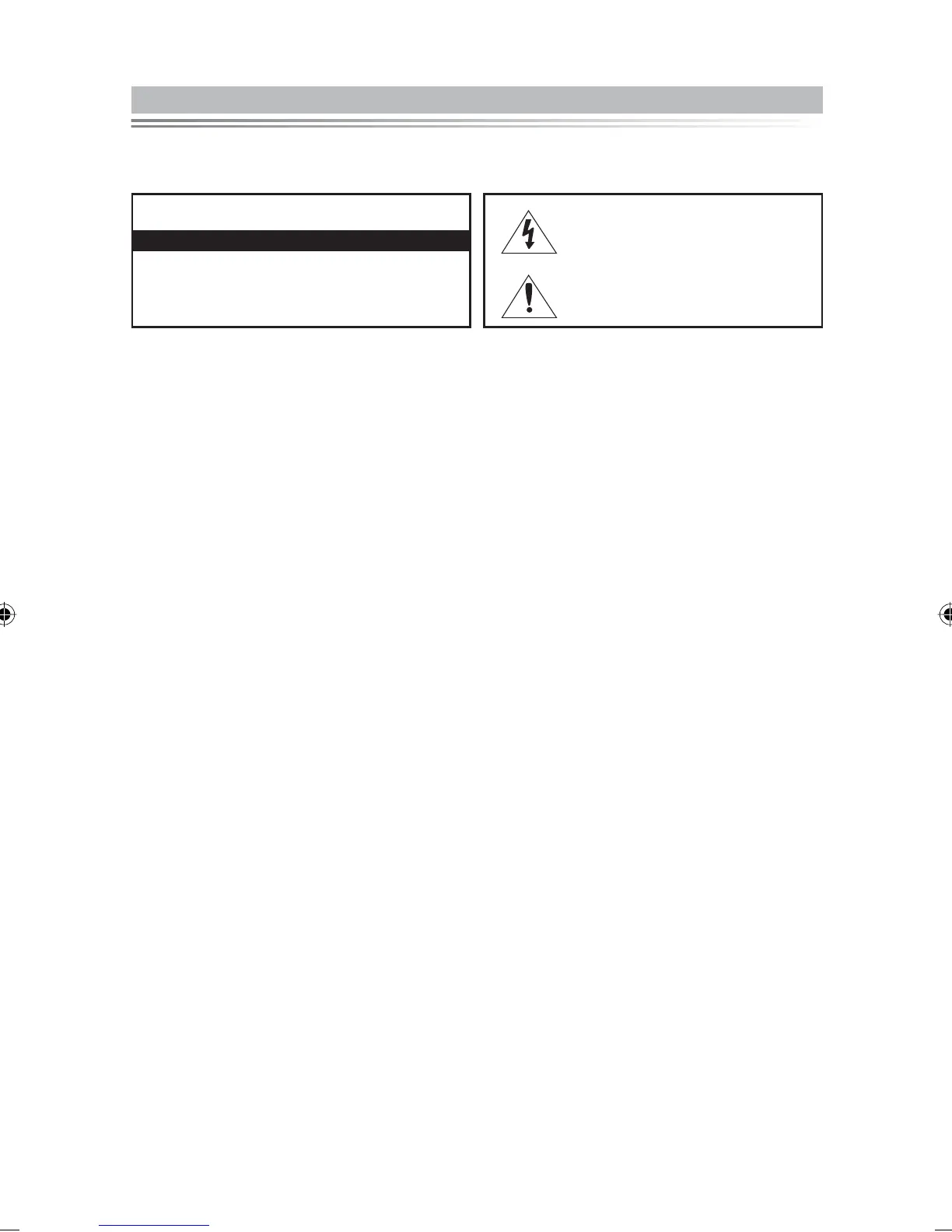 • Be sure to pull the power plug out of the outlet if the TV is to remain unused or if you are to leave the house for an