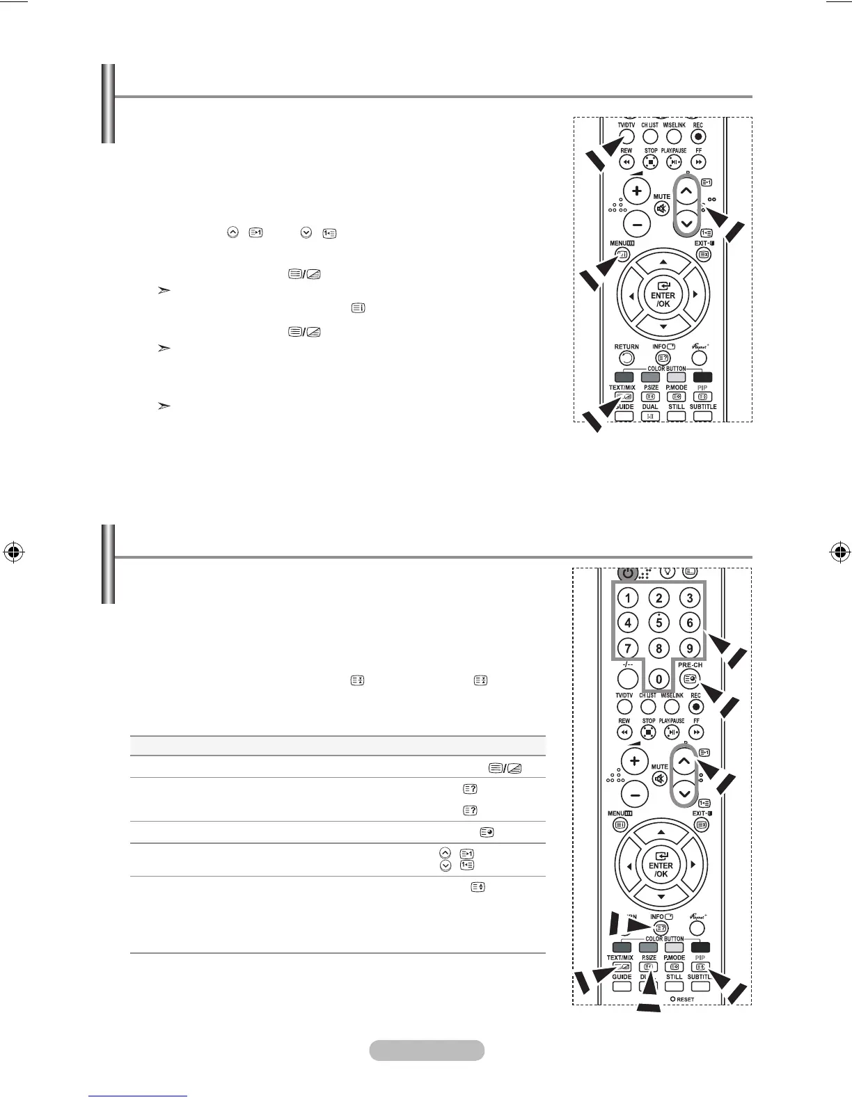 2. Press the TEXT/MIX ( ) button to activate the teletext mode.