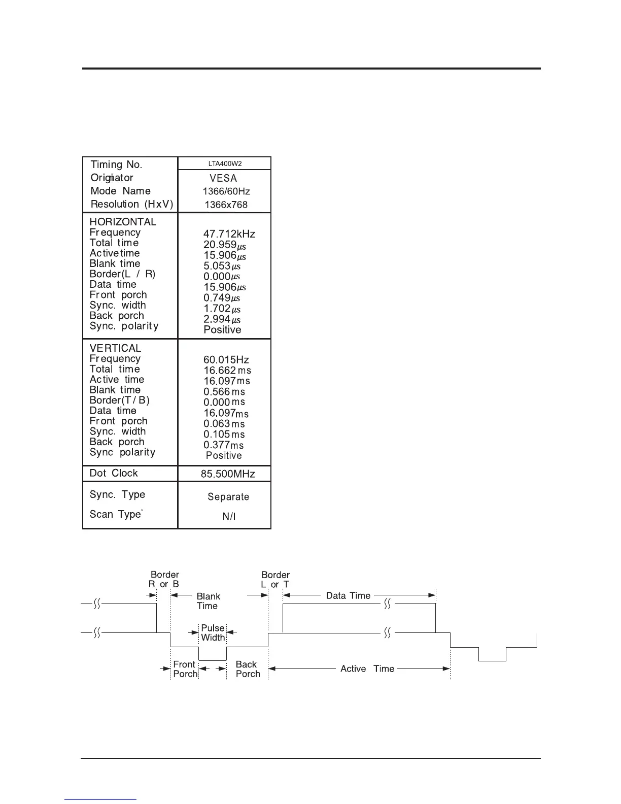 This section of the service manual describes the timing that the computer industry recognizes as standard for computer-