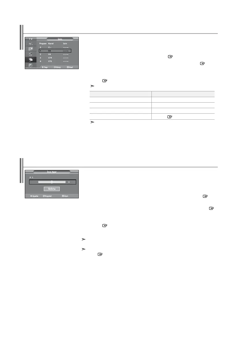 “İsim”seçmekiçinveyadüğmesinebasınvesonra ENTER