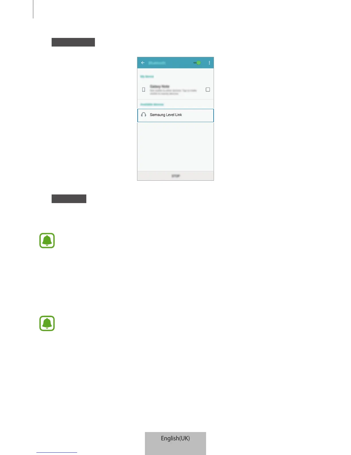 files via another audio device, such as a Bluetooth headset. When you turn on the Level Link