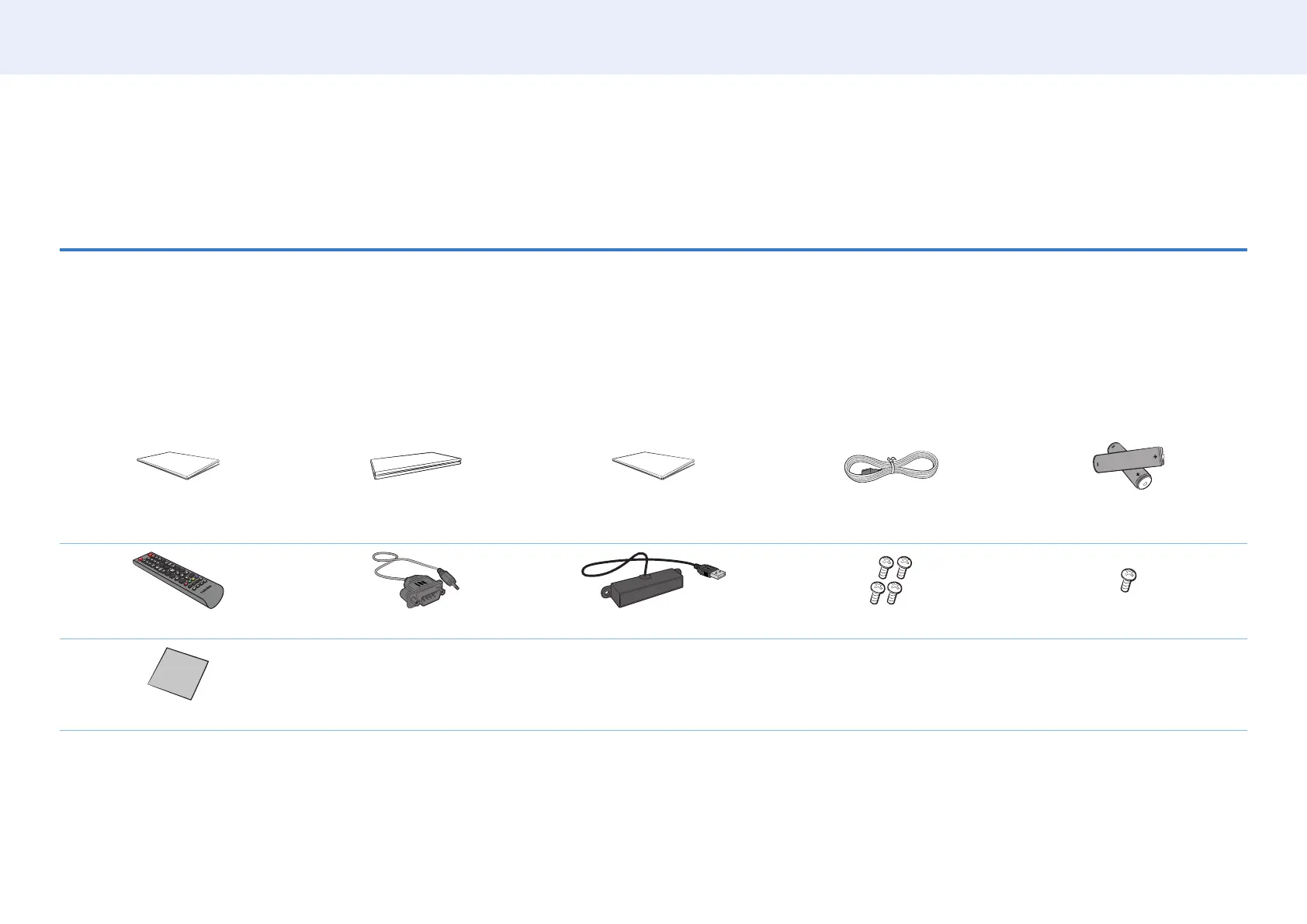 Remote control RS232C(IN) adapter Proximity sensor Screw (M4L8, 4 pieces) Screw (M3L8, 1 piece)
