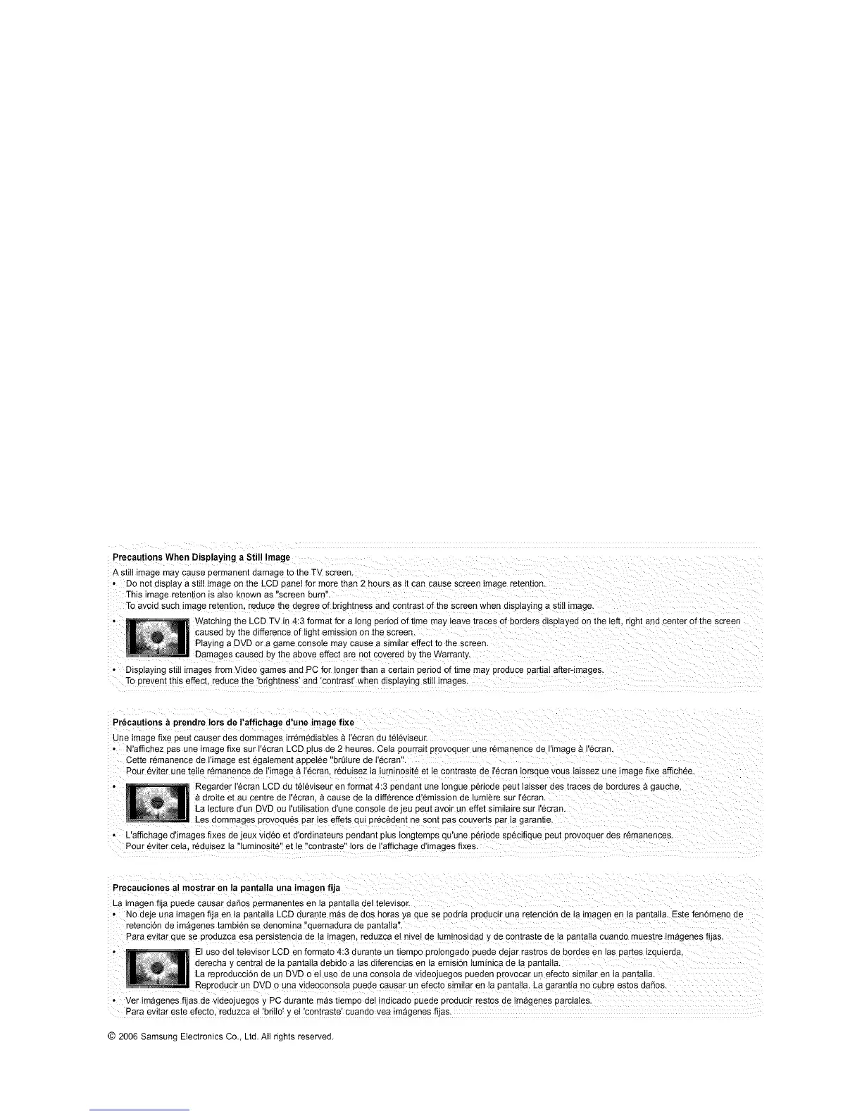 • N'affichez pas une image fixe sur I'ecran LCD plus de 2 heures. Ceta pourraa provoquer une remanence de I'image & I'ecran.