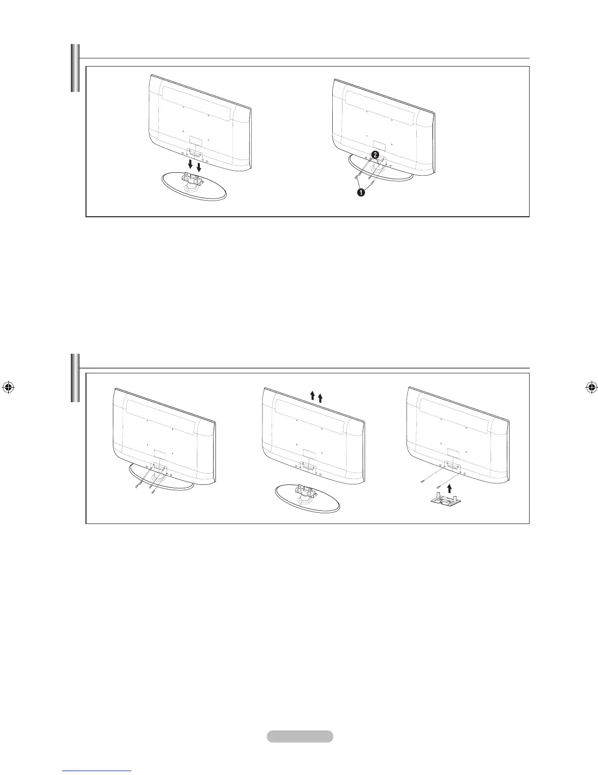 Stand the product up and fasten the screws. If you fasten the screws with the LCD TV placed down, it may lean to