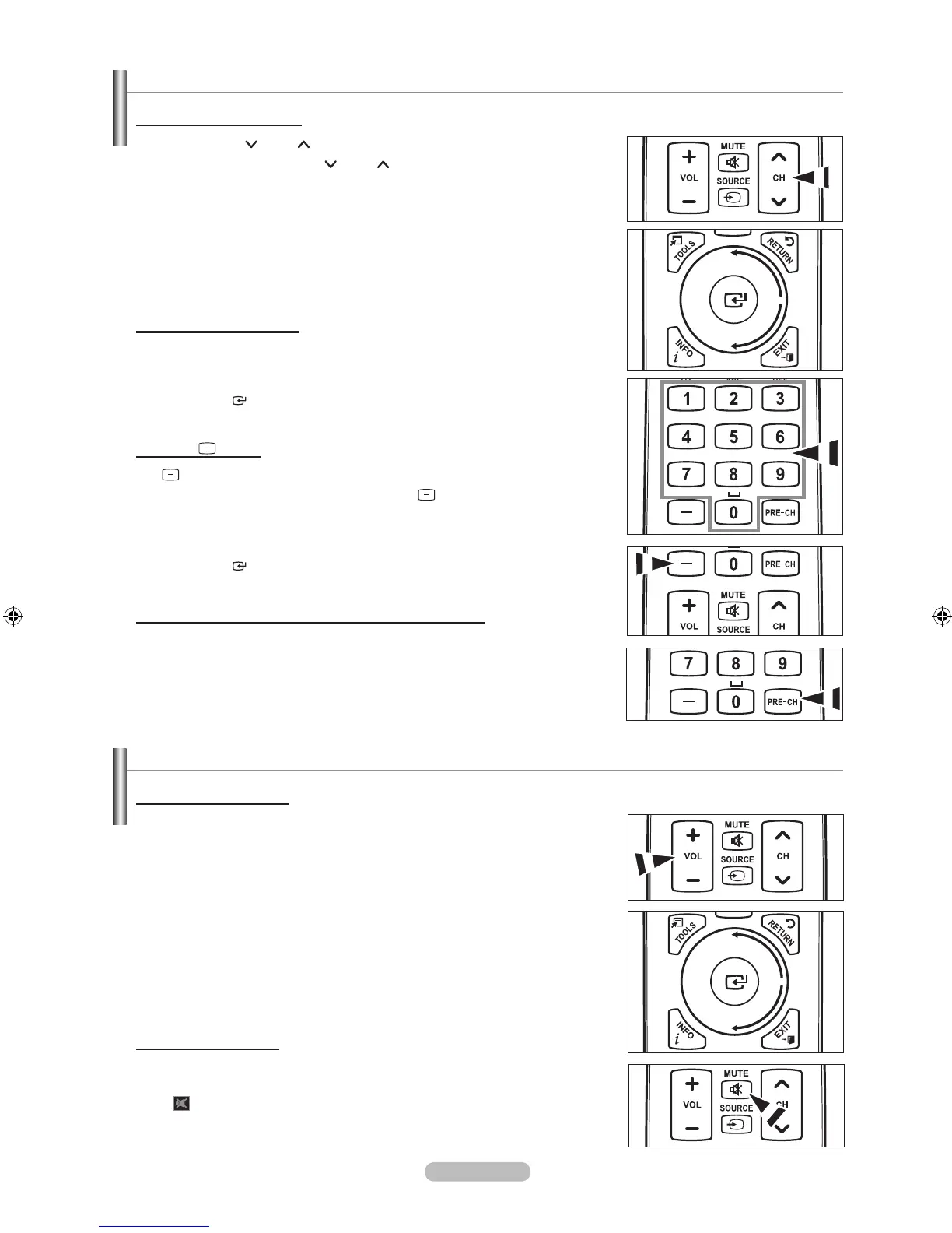 1. Press the PRE-CH button. The TV will switch to the last channel viewed.