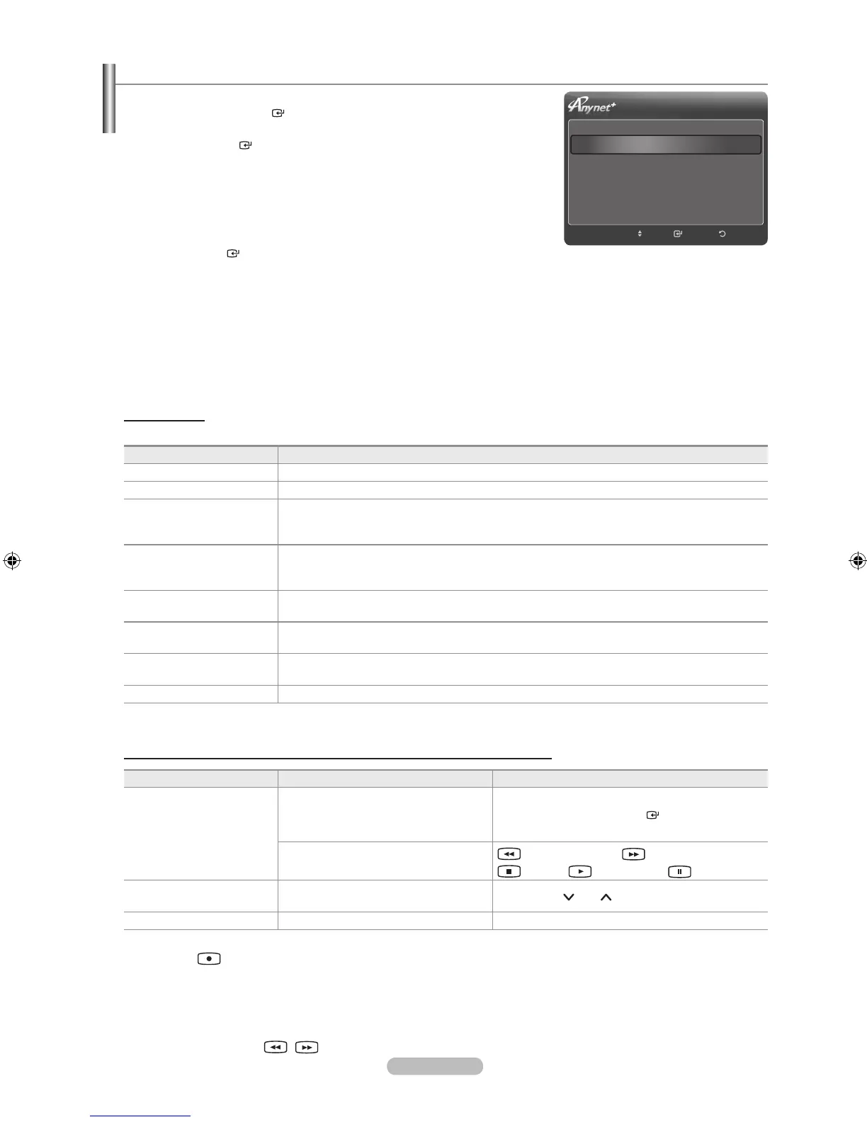 Botónes del mando a distancia del televisor disponibles en el modo Anynet